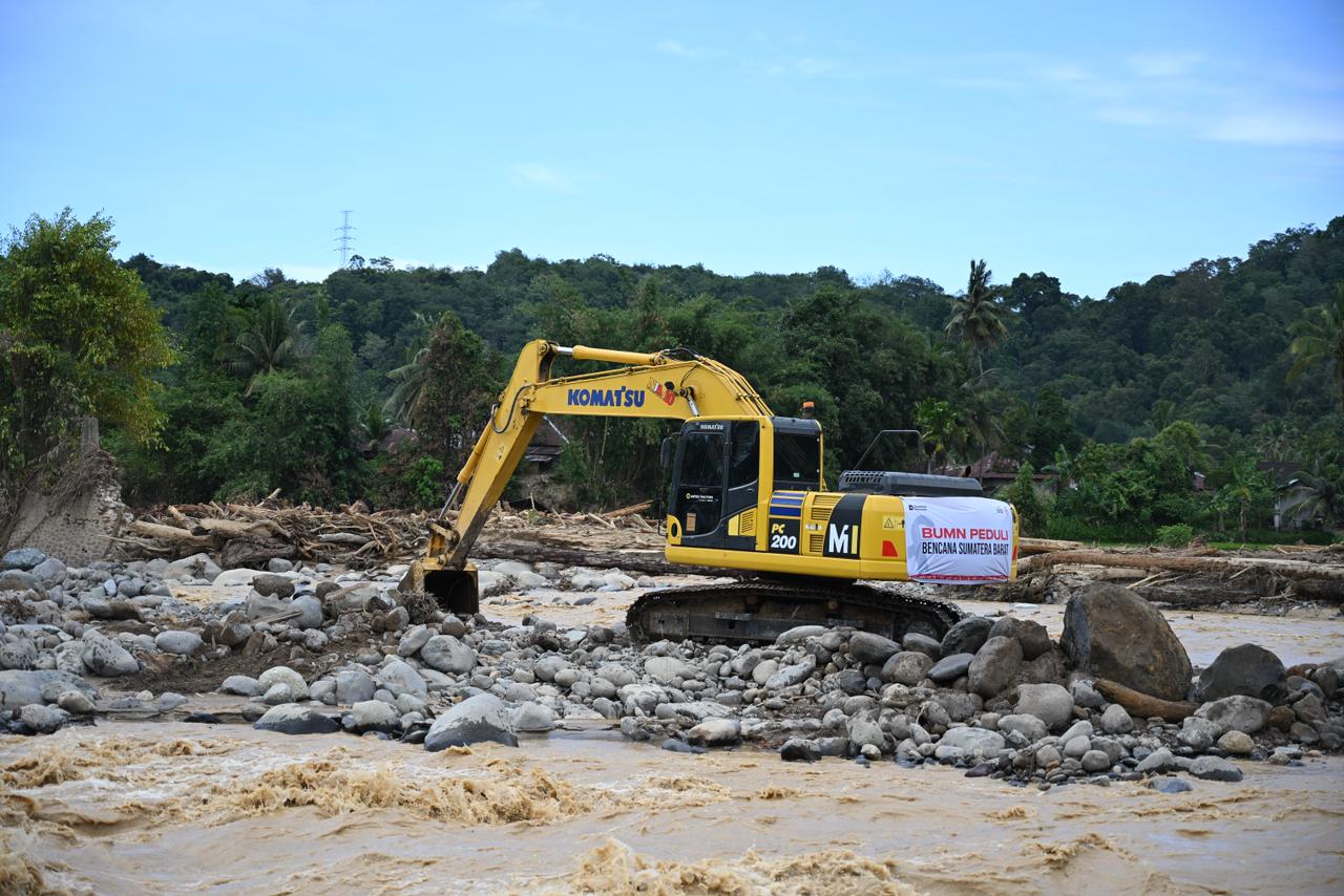 Selain bantuan logistik, perusahaan juga mengerahkan tiga unit alat berat untuk membersihkan material lumpur di sejumlah titik terdampak. Fokus utama pembersihan berada di sepanjang Jalan Raya Mohammad Hatta, jalur vital yang menghubungkan Simpang Pasar Baru dan Simpang Pasir.