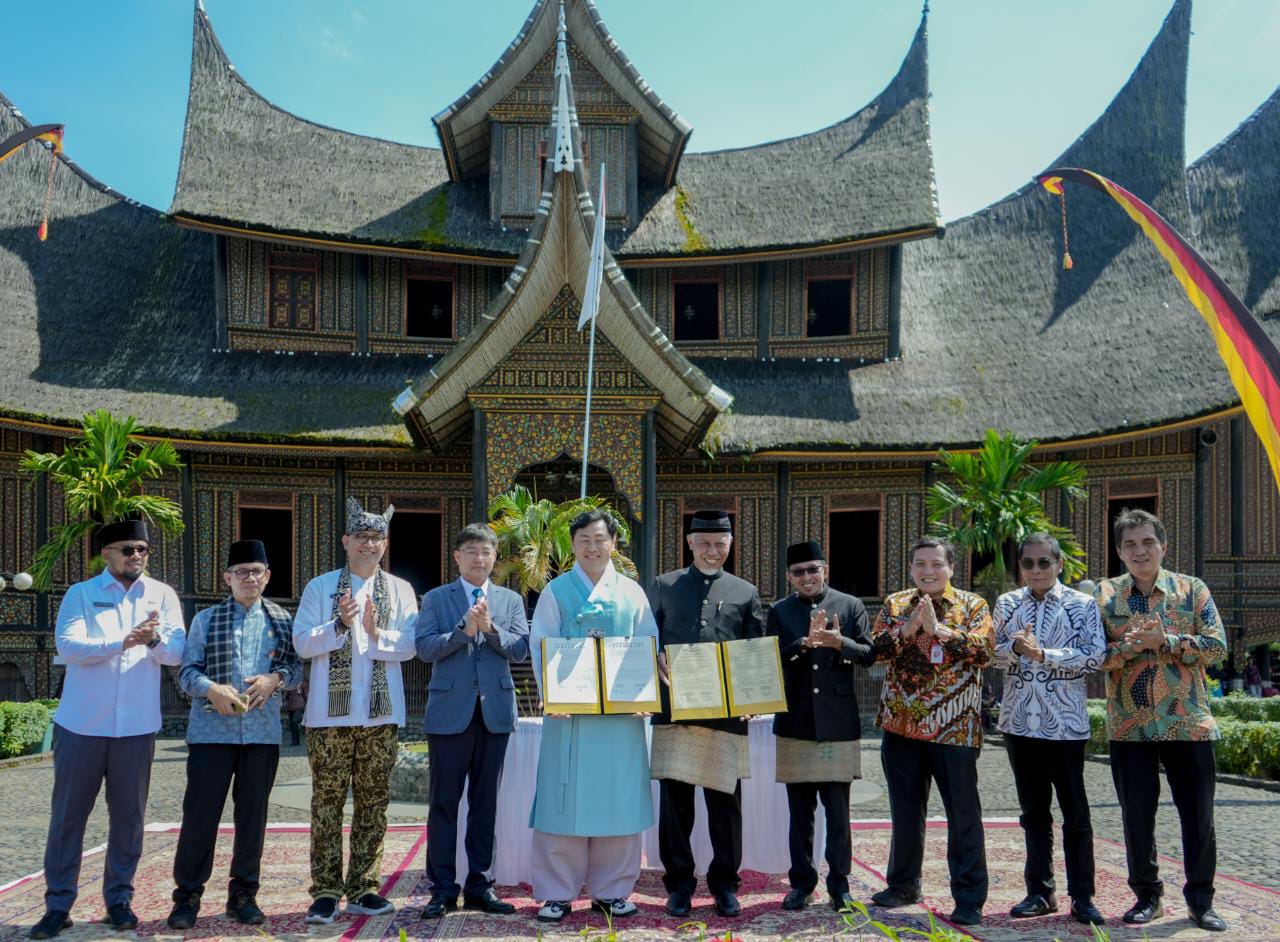 Turut hadir saat penanda tanganan tersebut Dir. Kerjasama Luar/Eksternal Provinsi Jeollabuk-do Mr. Song Ju Sub, Tenaga Akhli/Penasehat untuk Kerjasama Internasional Prov. Jeollabuk-do Mrs. Kim Eje, Wakil Bupati Padang Pariaman, Kepala OPD Pemprov Sumbar, Kepala OPD Pemkab Tanah Datar, Ketua Bundo Kanduang Sumatera Barat Bundo Raudah Thaib dan undangan lainnya. (*/FS)