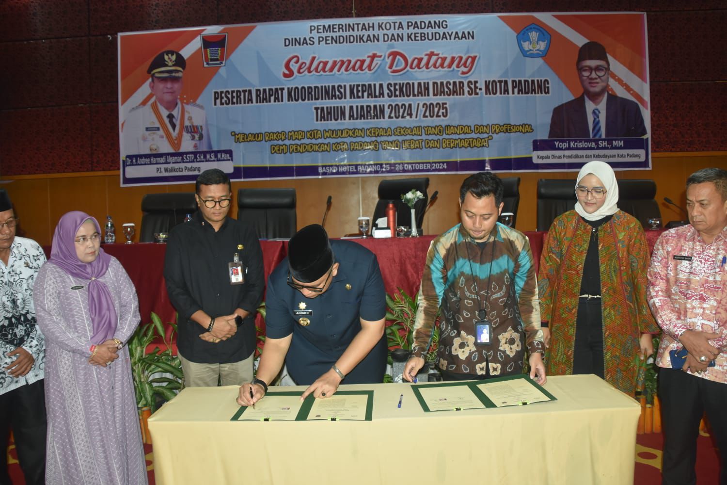 “Kepala sekolah harus kreatif dan inovatif dalam memajukan sekolah. Harus punya ide-ide cemerlang. Tidak masanya lagi kepala sekolah hanya sekedar menjalankan rutinitas tanpa adanya inovasi untuk kemajuan sekolah,” pesan Andree Algamar dalam Rapat Koordinasi Kepala SD se-Kota Padang, Jumat (25/10/2024).