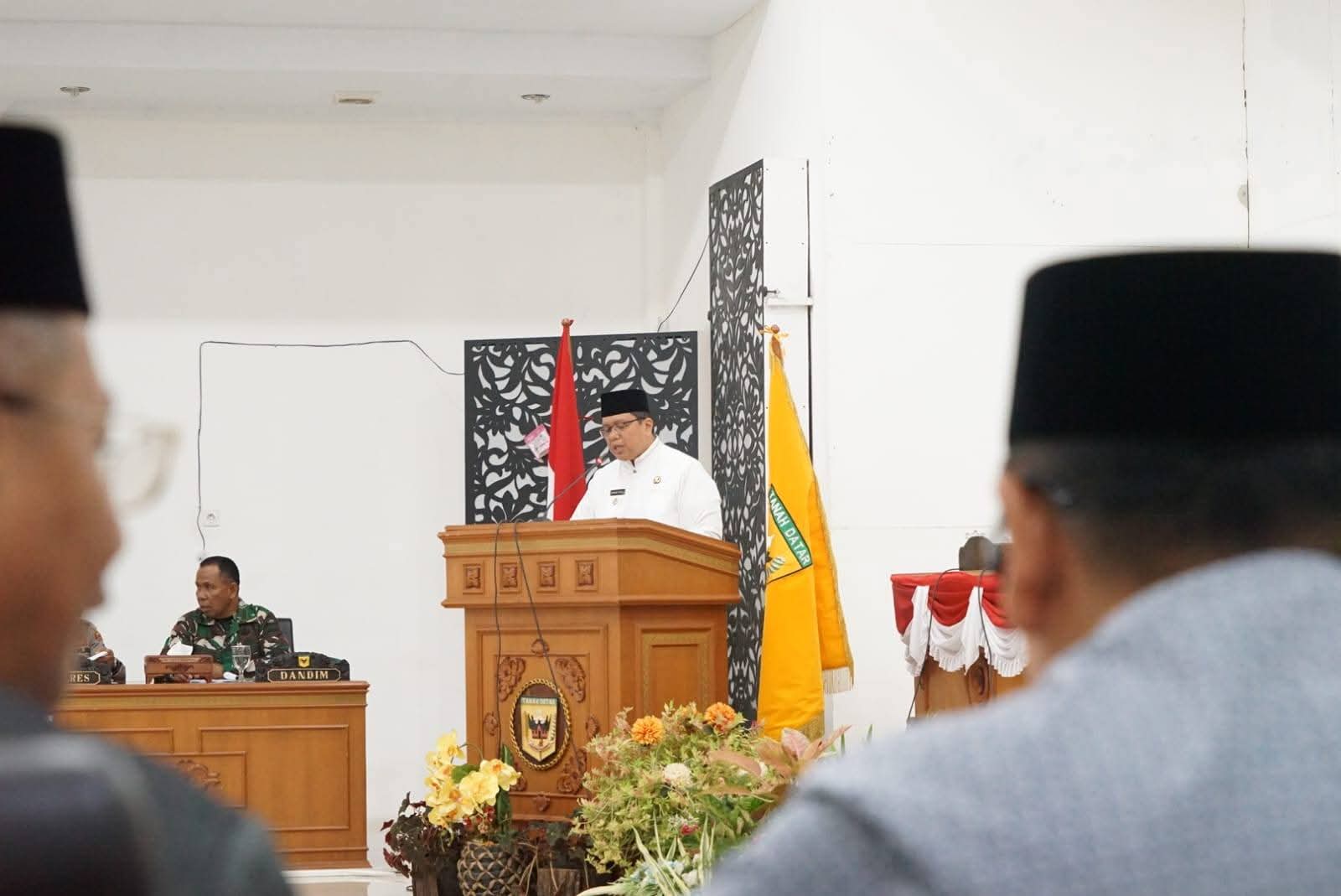 Rapat dipimpin langsung oleh Ketua DPRD Tanah Datar, Anton Yondra, didampingi Wakil Ketua Nurhamdi Zahari dan Kamrita. Turut hadir Wakil Bupati Tanah Datar Ahmad Fadly, Sekretaris Daerah, staf ahli bupati, para asisten, kepala OPD, camat, wali nagari, serta jajaran Forkopimda dan undangan lainnya.