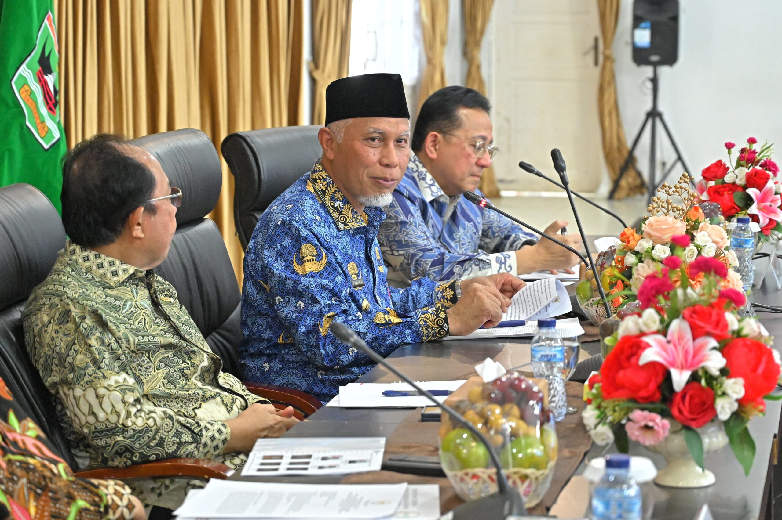 LanggamInfo-Gubernur Sumatera Barat (Sumbar), Mahyeldi Ansharullah mengikuti Rapat Kerja bersama rombongan Komite I DPD RI di Auditorium Istana Gubernuran, Senin (17/2/2025). Dalam kesempatan itu, Gubernur kembali menegaskan komitmen dan dukungan Pemprov Sumbar terhadap pelaksanaan program reforma agraria dan penyelesaian konflik pertanahan di Sumbar.