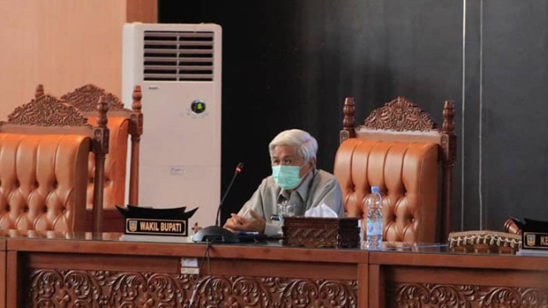 Langgam.id – Wakil Bupati Dharmasraya, DP Datuk Labuan, mendengarkan pandangan umum fraksi DPRD, terkait Nota Penjelasan Rancangan Peraturan Daerah (Ranperda) tentang Pertanggungjawaban Pelaksanaan APBD Tahun Anggaran 2020 yang disampaikan Pemerintah Kabupaten Dharmasraya, Senin (7/6/21) kemarin. Pandangan Umum Fraksi ini disampaikan dalam Rapat Paripurna yang digelar di Ruang Rapat Utama Sekretariat DPRD, Selasa (8/6/21).