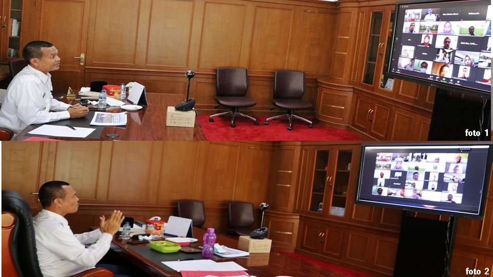 Dalam penyampainnya, Wako Genius Umar, yang melakukan webinar vidcon di ruang kerjanya, ucapkan terima kasih telah ikut diundang untuk acara webinar melalui vidcon ini. Ia menamatkan program S-2 nya di IPB tahun 2002 dan setelah itu melanjutkan program S-3 di Universitas Gajah Mada.