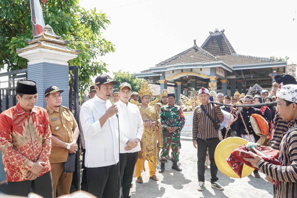 Bupati Lamongan Yuhronur Efendi bersama masyarakat Dusun Graman Desa Sambangrejo, Kecamatan Modo, Lamongan melaksanakan sedekah bumi sebagai wujud rasa syukur sekaligus merawat budaya lokal, Selasa (22/7/2025).