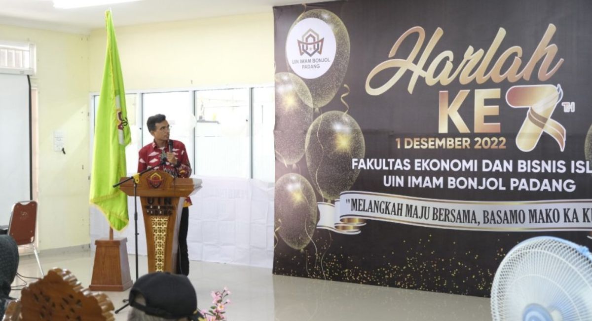 Langgam.id – Fakultas Ekonomi dan Bisnis Islam (FEBI) Universitas Islam Negeri (UIN) Imam Bonjol Padang genap berusia tujuh tahun. Acara puncak hari lahirnya (Haflah) ke-7 tahun berlangsung di Lobi FEBI, Kamis (1/12/2022).