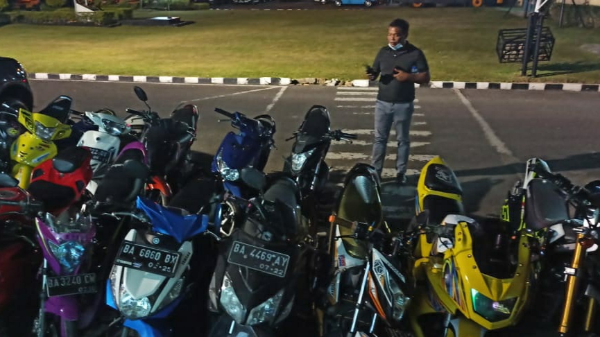 Langgam.id – Polisi menyita puluhan kendaraan yang digunakan untuk balap liar di Padang. Kendaraan itu disita saat petugas melakukan razia atau operasi One Night Service.