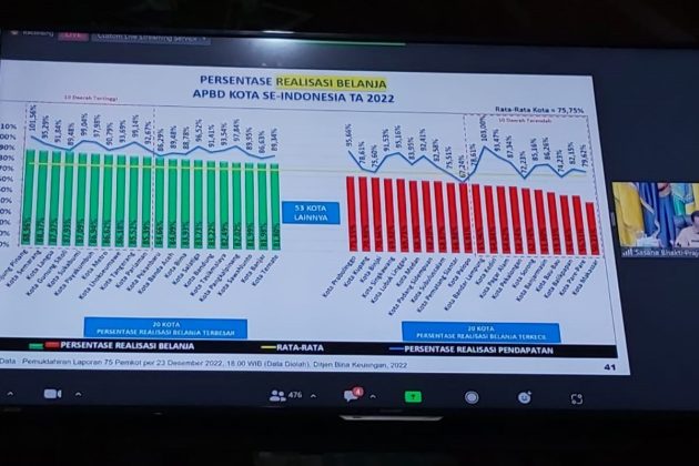 Adapun pemerintah kota dengan realisasi belanja terbesar di Indonesia di urutan pertama ada Kota Tanjung Pinang 88,96 persen, kemudian disusul Semarang 88,37 persen, Langsa 87,97 persen, Gunung Sitoli 97,93 persen, dan Sukabumi 87,09 persen.