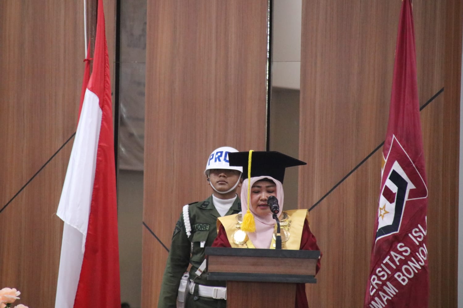 “Dihapan saya ini, telah dilantik para wisudawan dari Fakultas Dakwah dan Ilmu Komunikasi, Fakultas Ushuluddin dan Studi Agama. Para ulama, umara, dan profesional tangguh telah lahir dari rahim dua fakultas ini,” ujarnya.