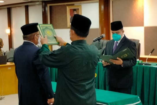 Proses pelantikan berlangsung ketat dengan pemberlakuan protokol kesehatan (prokes) covid-19 dan sangat dibatasi jumlah undangan yang hadir.