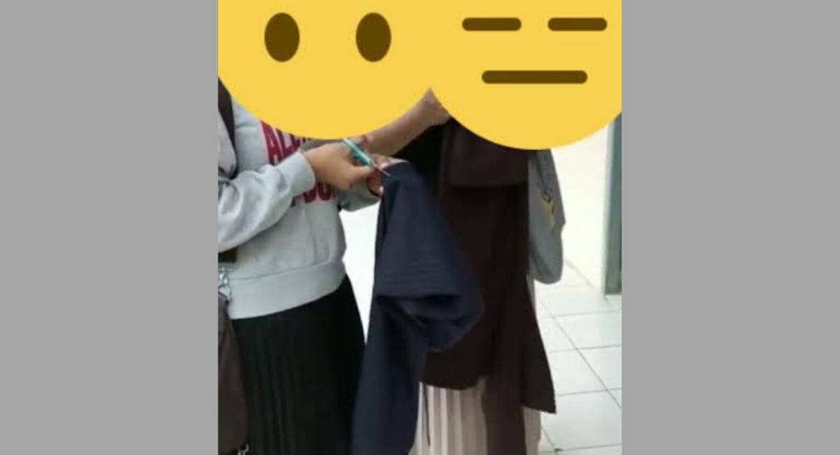 Mahasiswi yang disanksi dinilai tidak sesuai ketentuan tata tertib asrama yaitu dengan memakai rok dan tidak boleh memakai celana. Atas pelanggaran ketentuan itu, mahasiswa pembina asrama memerintahkan untuk menggunting celananya sendiri.