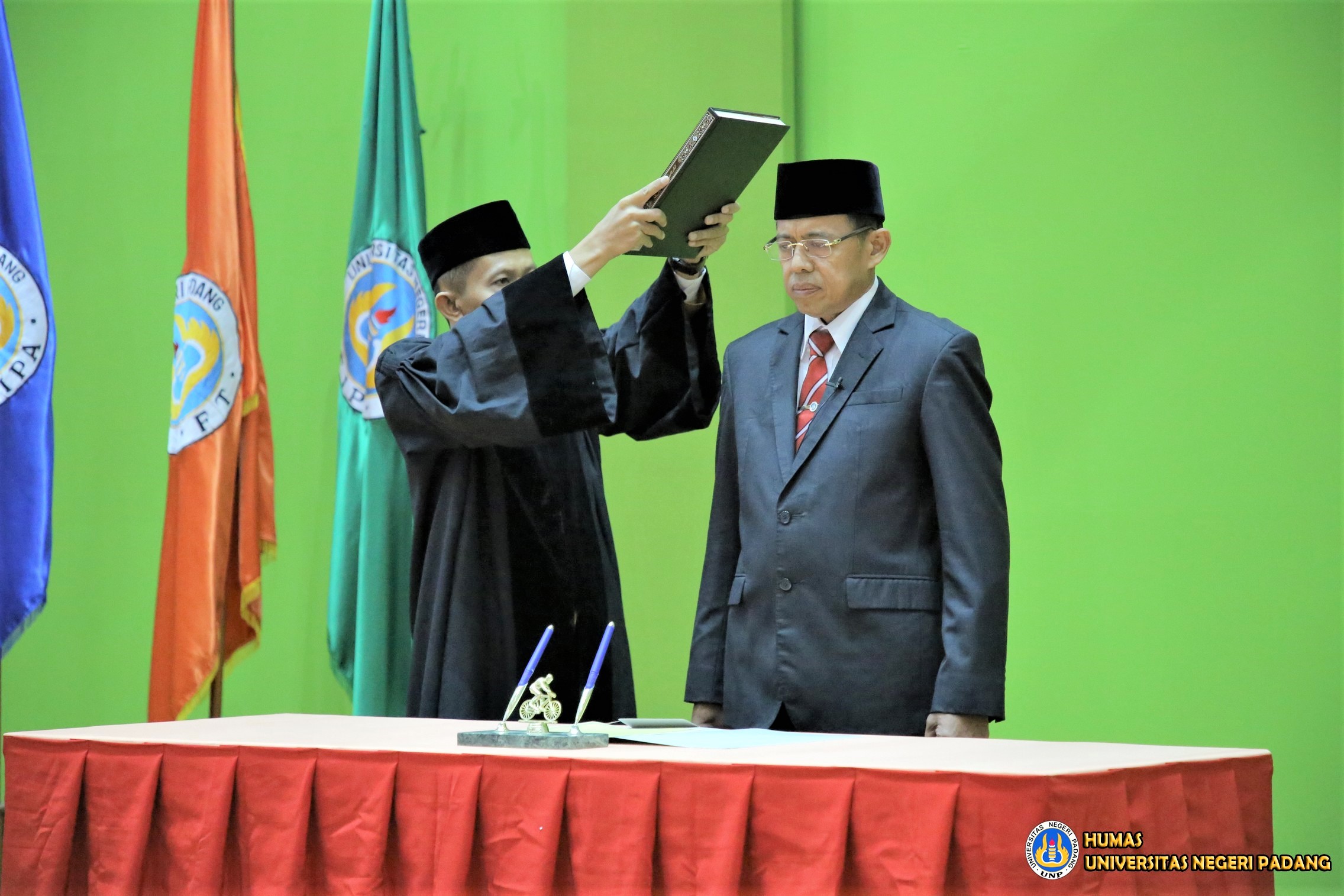 Ganefri saat dilantik menjadi Rektor UNP periode kedua. (Foto: Humas UNP)