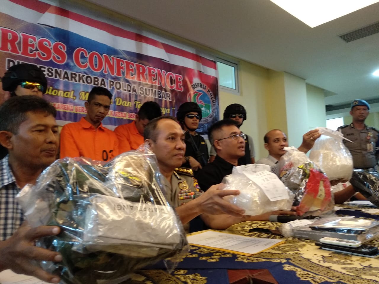 “Ini sebuah keberuntungan, ketika kami patroli, salah seorang tersangka melintas pakai sepeda motor dengan kecepatan tinggi. Gerak-geriknya mencurigakan. Kami ikuti dan sampai di lokasi kami periksa. Ternyata betul dia bawa narkoba,” kata Kombes Pol Ma’mum kepada wartawan saat konfrensi pers di Mapolda Sumbar, Kamis (4/7/2019).
