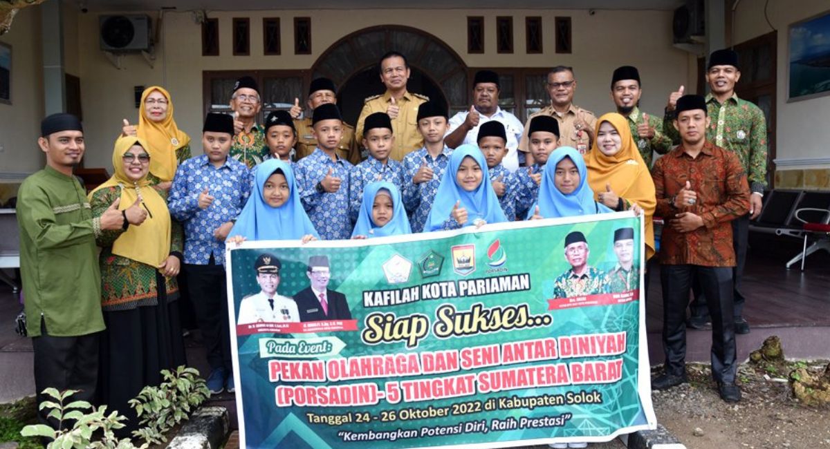 Langgam.id – Wali Kota Pariaman Genius Umar melepas atlet serta kafilah untuk mengikuti Pekan Olahraga dan Seni Antar Diniyah (Porsadin) tingkat Provinsi Sumatra Barat. Pelepasan bertempat di Pendopo Balairung Wali Kota Pariaman, Senin (24/10/2022).