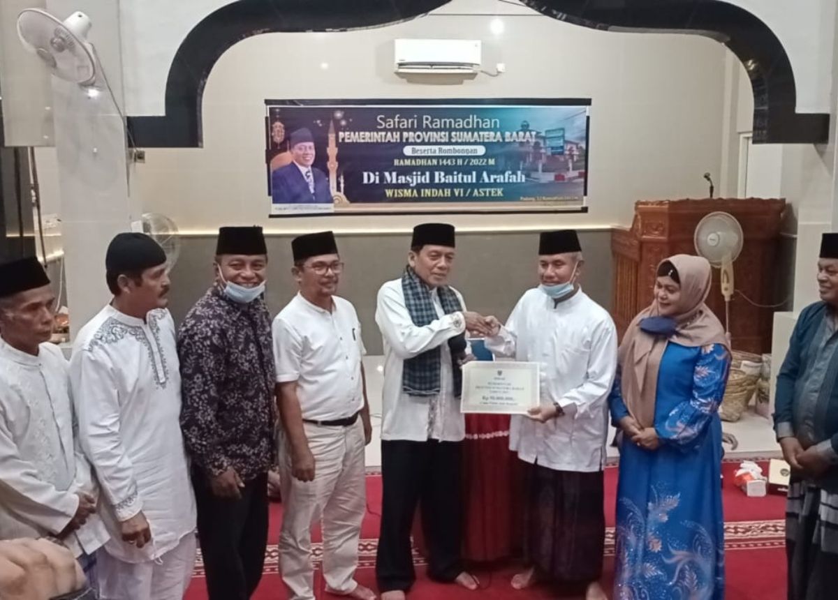 Dalam kesempatan itu, Wakil Ketua DPRD Sumbar Suwirpen Suib atas nama Tim Safari Ramadan Pemprov Sumbar juga memberikan bantuan sebesar Rp50 Juta untuk Masjid Baitul Arafah.