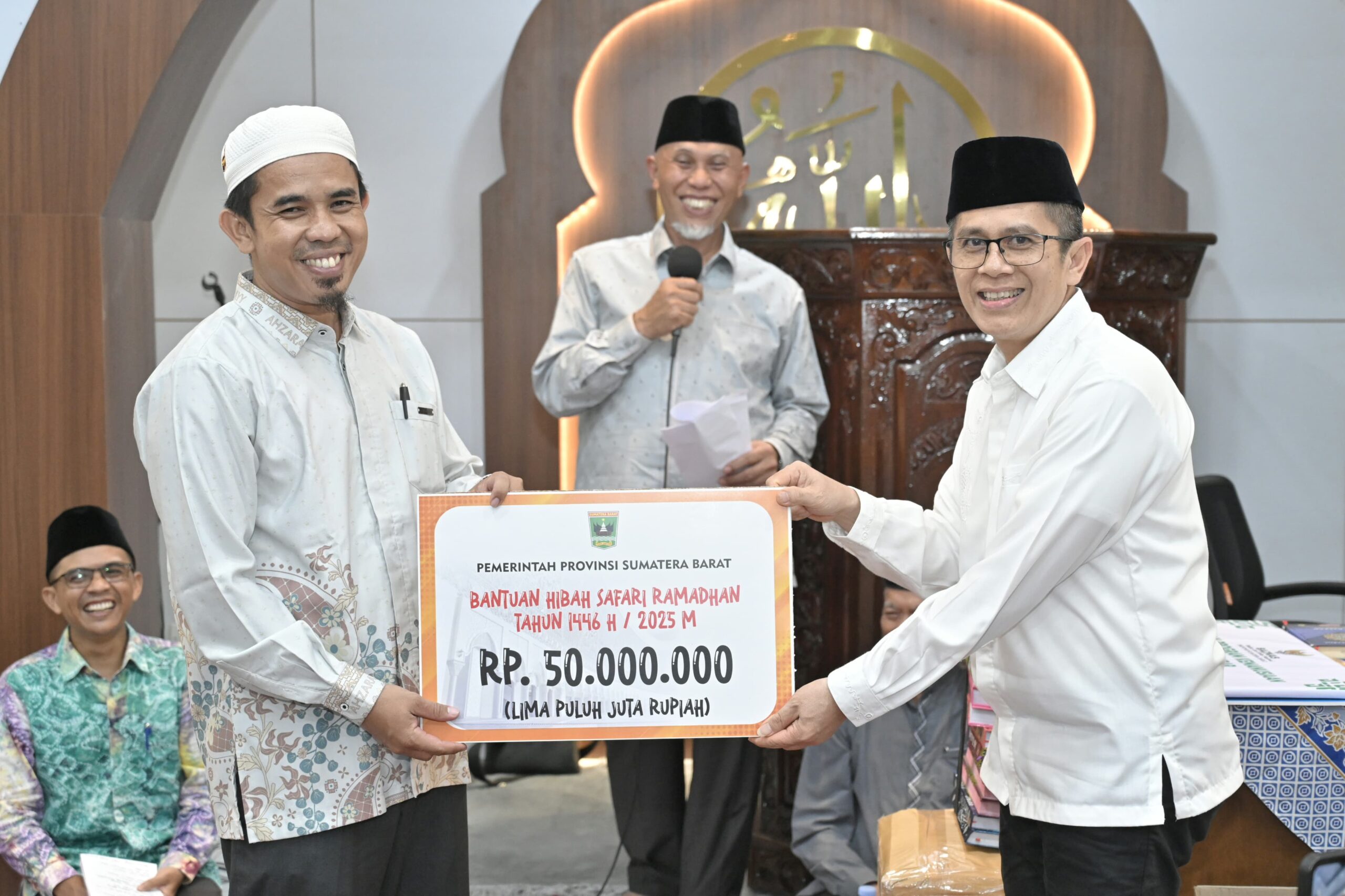 Total bantuan yang disalurkan Gubernur Mahyeldi di masjid tersebut sekitar Rp 91 juta, yang terdiri dari kontribusi berbagai instansi, termasuk Rp 50 juta dari Pemerintah Provinsi Sumbar, Rp 10 juta dari Bank Nagari, dan Rp 10 juta dari Jamkrida Sumbar.