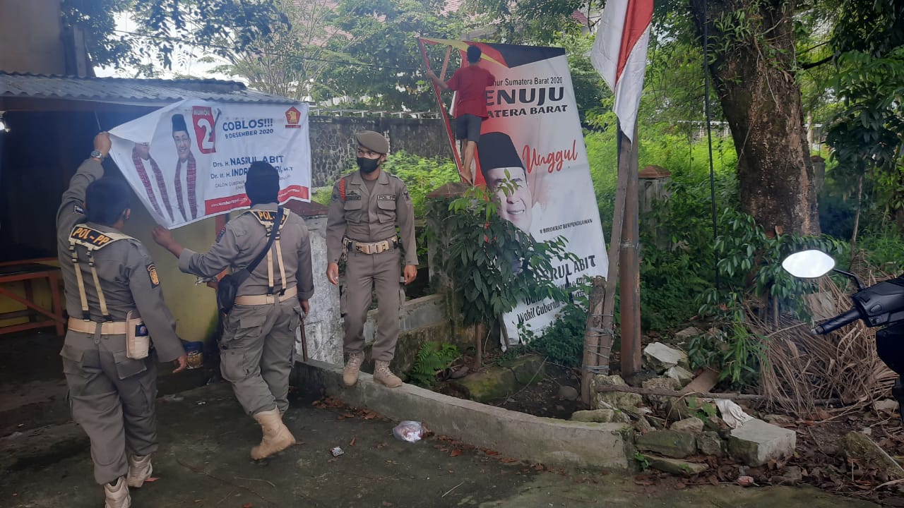 “Kami telah mendapatkan izin dari Plt Wali Kota Padang, untuk menertibkan baliho imbau Pemko Padang yang memasang wajah kepala daerah yang ikut Pilkada seperti imbauan penerapan protokol kesehatan dan lainnya,” katanya.