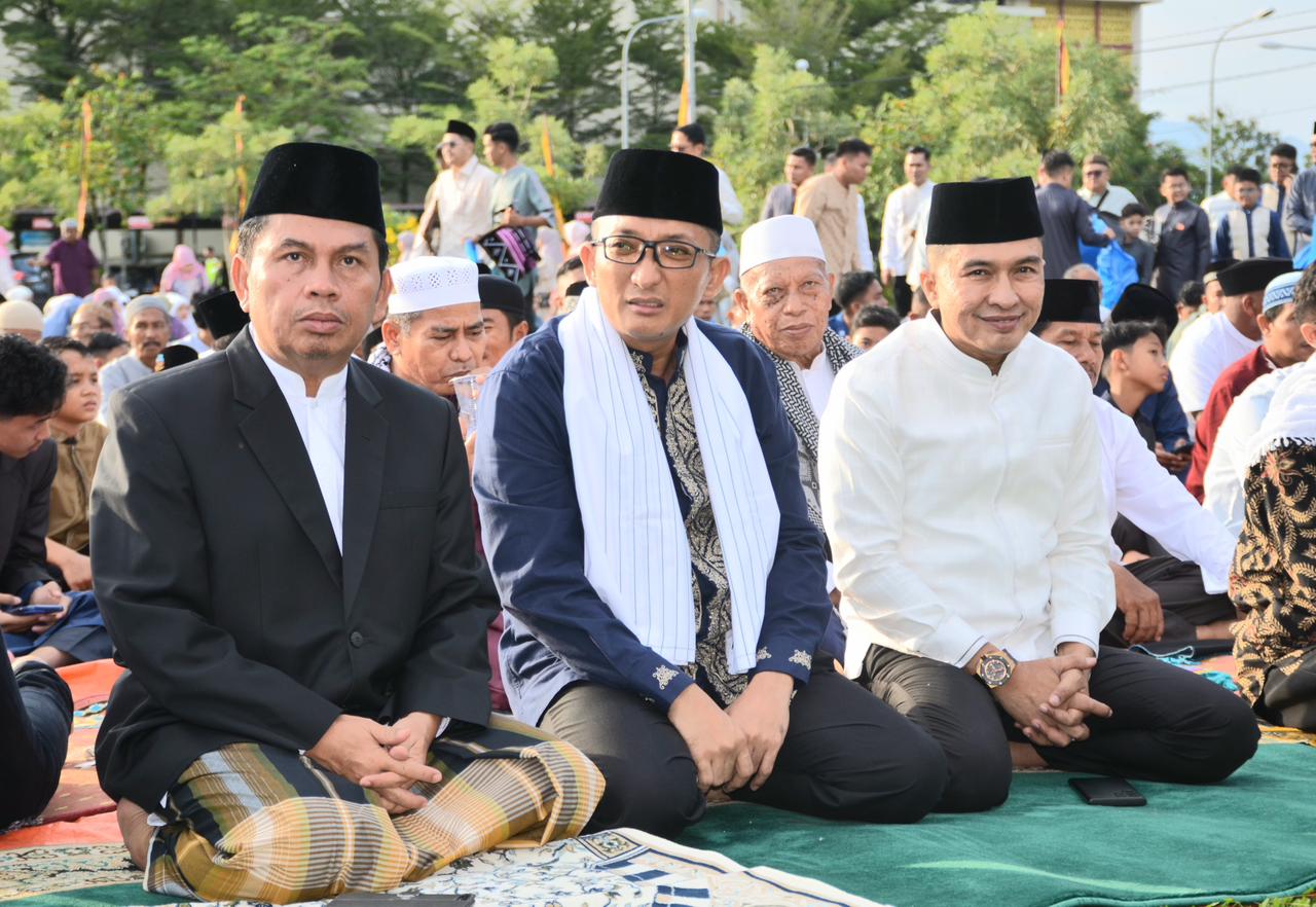 Selain Wali Kota Padang, Wakil Wali Kota Ekos Albar, Sekda Andree Algamar, Forkopimda Kota Padang, Kakan Kemenag Padang, para pimpinan OPD, tokoh agama, tokoh masyarakat dan tamu undangan lainnya juga mengikuti salat Ied di Lapangan Tugu Apeksi Balaikota Aie Pacah. (*/Fs)