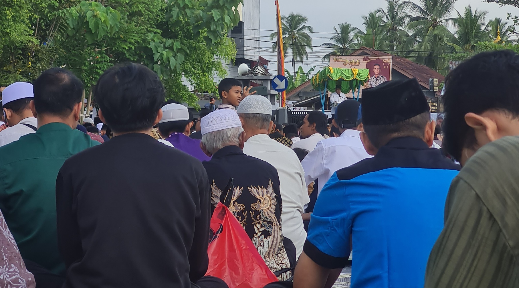 Pantauan langgam.id, jemaah sudah mengular hingga teras kantor wali kota. Jemaah terlihat sumringah di hari nan fitri ini.