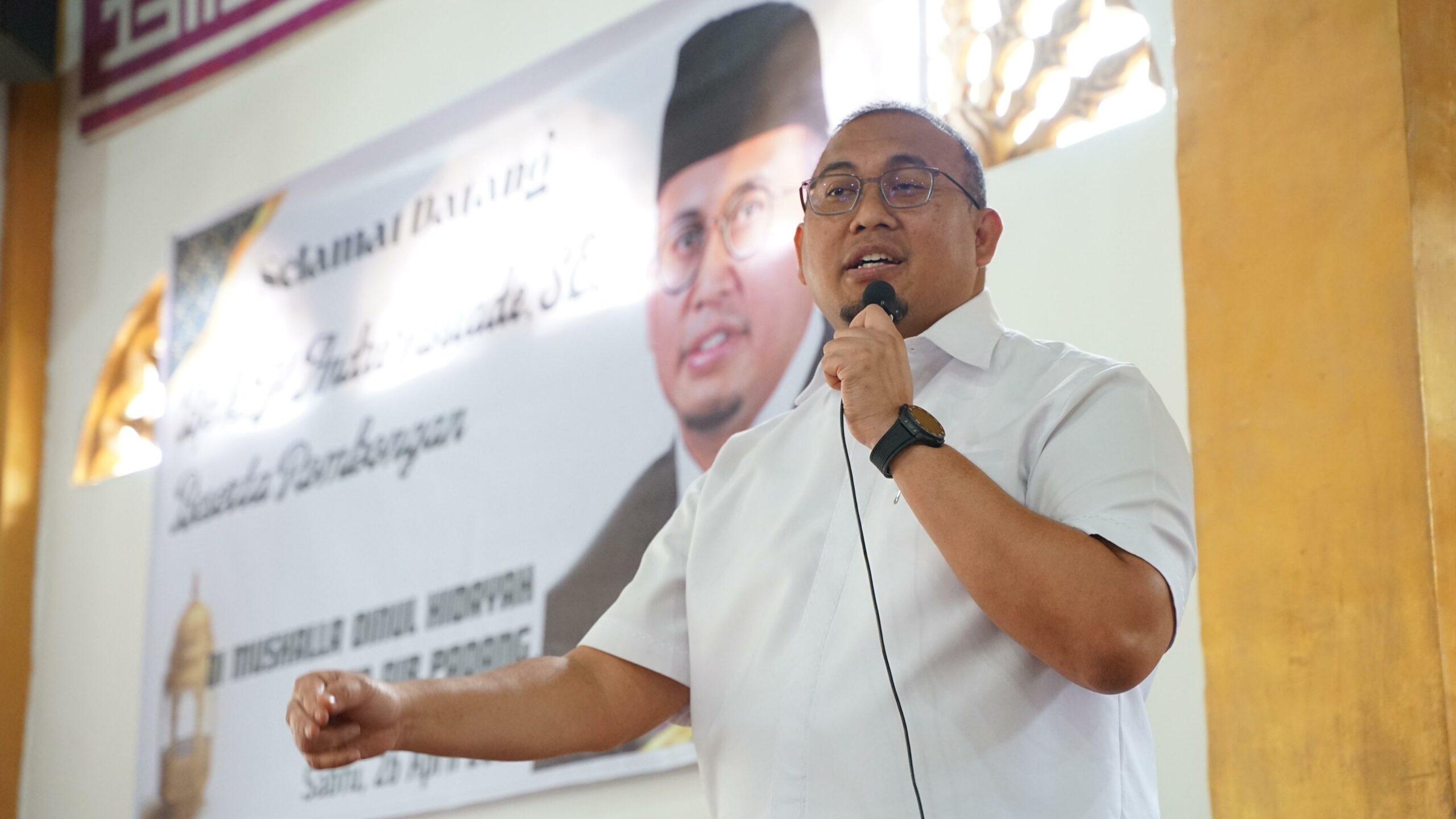 “Alhamdulillah kami sudah memberikan bantuan Rp75 juta untuk Musala Dinul Hidayah. Semoga banyak manfaatnya. Kami juga akan kurban satu ekor sapi di sini,” ujar Andre Rosiade di hadapan jamaah dan Ketua Pengurus Musala Dinul Hidayah Anwar Siddiq.
