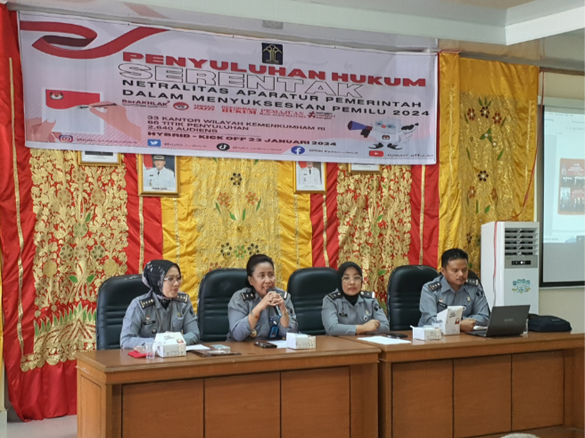 Turut hadir Kepala Divisi Pelayanan Hukum dan HAM, Ruliana Pendah Harsiwi bersama Tim Penyuluh Hukum Kanwil Kemenkumham Sumbar yang akan melakukan sosialisasi terkait Netralitas Aparatur Pemerintah dalam Menyukseskan Pemilu 2024 dan Paralegal Justice Award 2024.