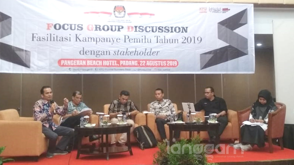 Hal ini dikatakan Komisioner Badan Pengawas Pemilu (Bawaslu) Sumatra Barat (Sumbar) Vifner saat mengikuti Focus Group Discussion (FGD) Fasilitasi Kampanye Pemilu 2019 yang digelar KPU Sumbar di Padang, Kamis (22/8/2019).