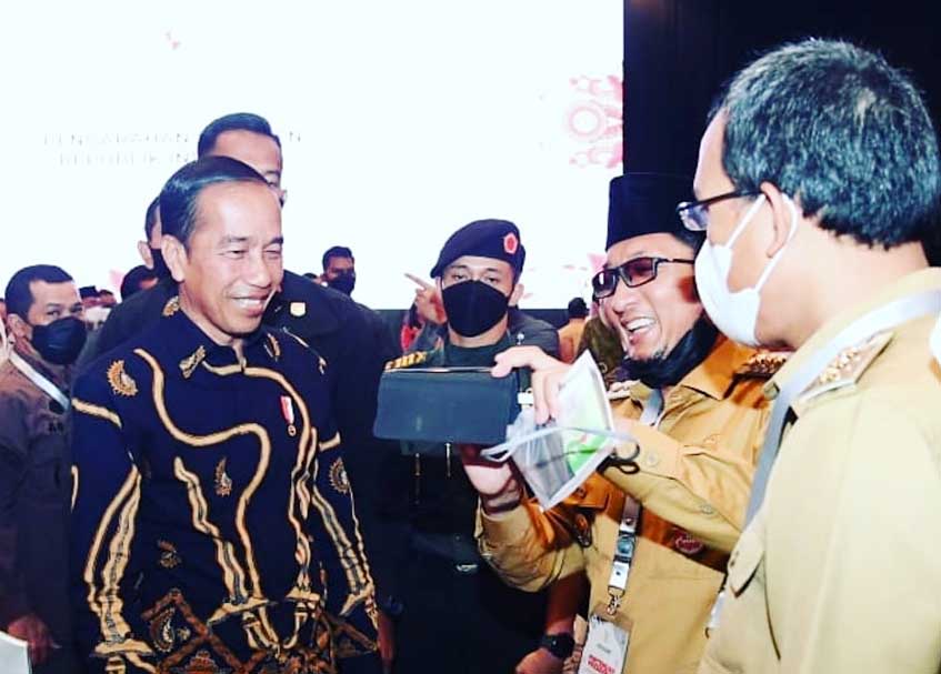 Langgam.id – Presiden Joko Widodo menyapa dan bercanda dengan Wali Kota Padang, Hendri Septa di hadapan sejumlah kepala daerah usai menggelar rapat pengarahan pengendalian inflasi di Jakarta Convention Center (JCC), Kamis (29/9/2022).