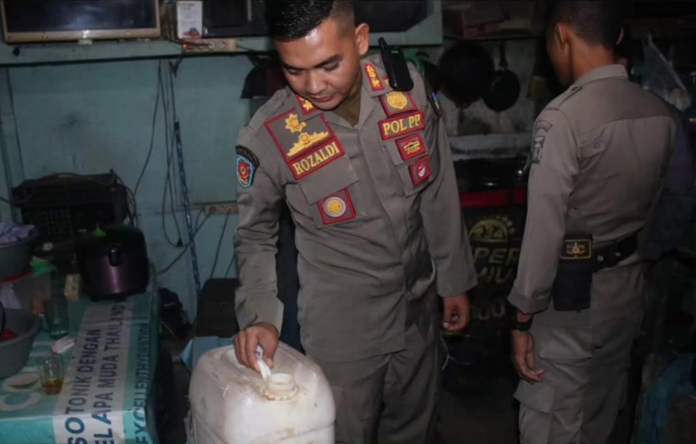 Saat didatangi, Satpol PP melakukan audiensi dan pengawasan di warung tersebut. Hasilnya, ditemukan satu jerigen minuman tuak yang kemudian diamankan sebagai barang bukti.