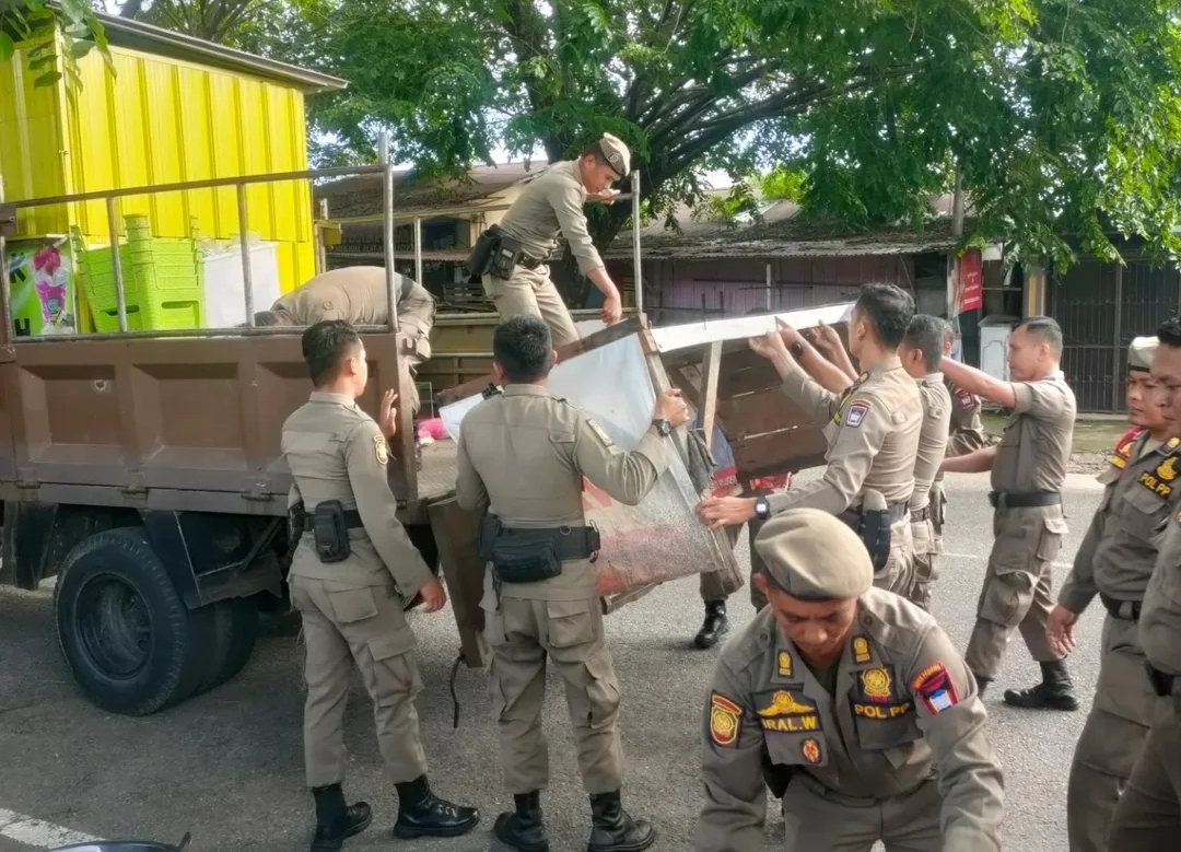 Dalam operasi pagi hari itu, petugas menyisir area yang masih dipenuhi barang dagangan para PKL, seperti gerobak, meja, dan kursi yang ditinggalkan begitu saja di fasilitas umum. Penertiban dilakukan secara persuasif dan edukatif, namun tetap tegas demi menjaga ketertiban umum.