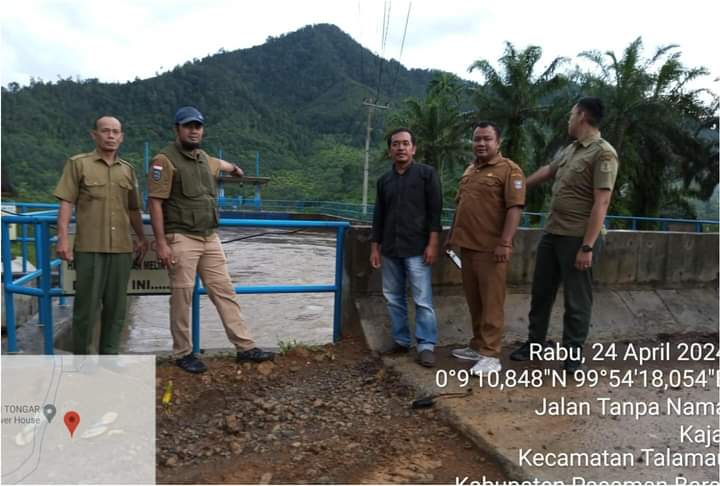 Tim BKSDA Sumbar bersama pihak nagari dan PLTMH Tangor melakukan koordinasi dan pengecekan lokasi kejadian pada Rabu (24/4/2024).