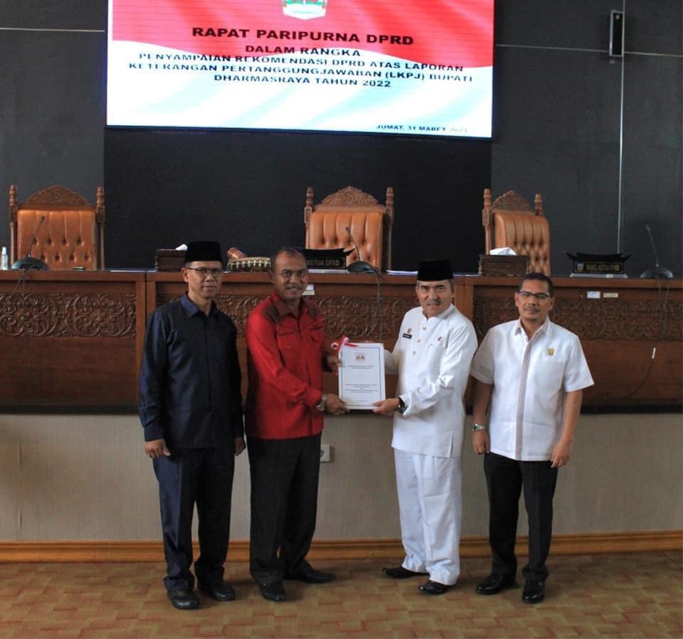 Langgam.id – Sekretaris Daerah (Sekda) Dharmasraya Adlisman menghadiri Rapat Paripurna DPRD dalam rangka mendengarkan rekomendasi lembaga legislatif itu atas Laporan Keterangan Pertanggungjawaban (LKPj) pelaksanaan Tahun Anggaran 2022, Jumat (31/3/2023).