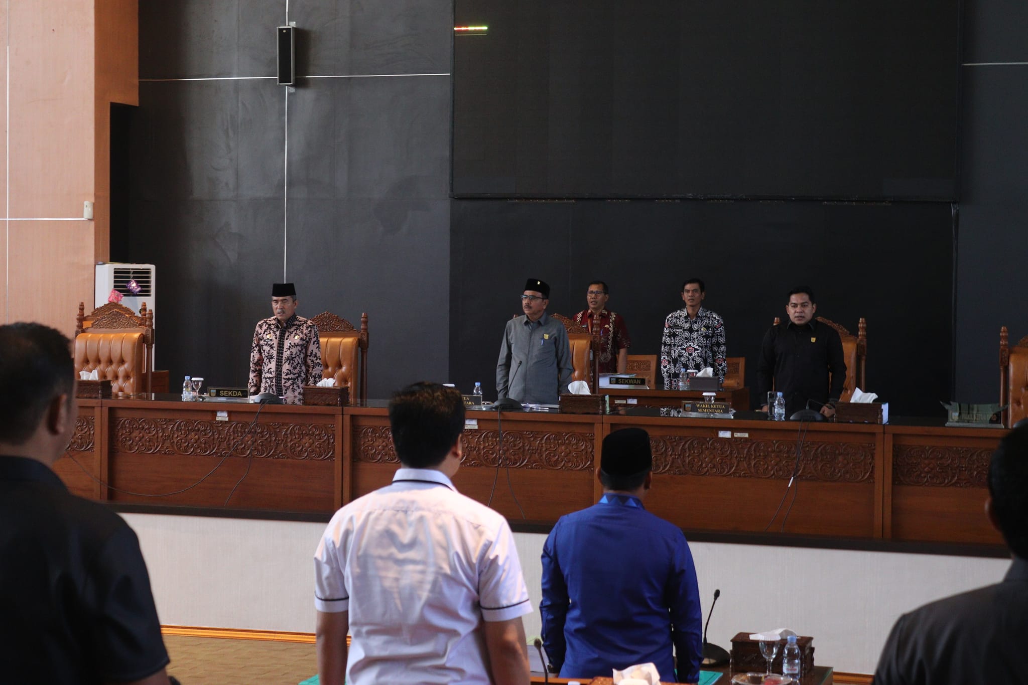 Rapat paripurna ini dipimpin oleh Ketua DPRD sementara Wigiono dan didampingi oleh Wakil Ketua Sementara Ade Sudarman.