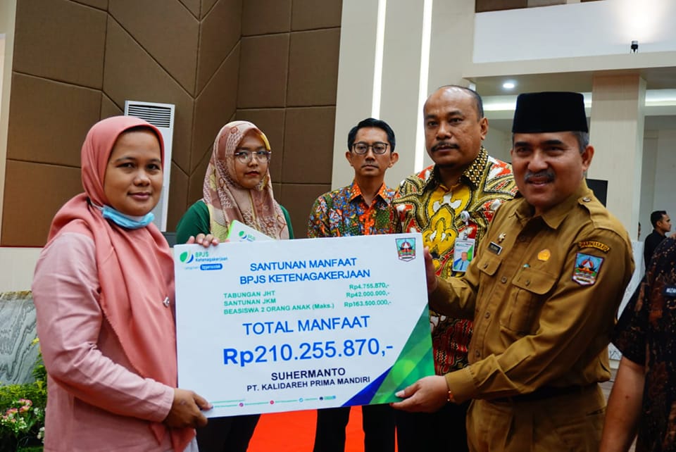 Penyerahan manfaat ini diberikan kepada keluarga atau ahli waris Suhermanto berupa tabungan jaminan tua sebesar Rp.4.755.870, santunan jaminan kematian sebesar Rp.42.000.000 dan beasiswa untuk maksimal 2 orang anak sebesar Rp.163.500.000. Total manfaat yang diterima oleh ahli waris sebanyak Rp.210.255.870.