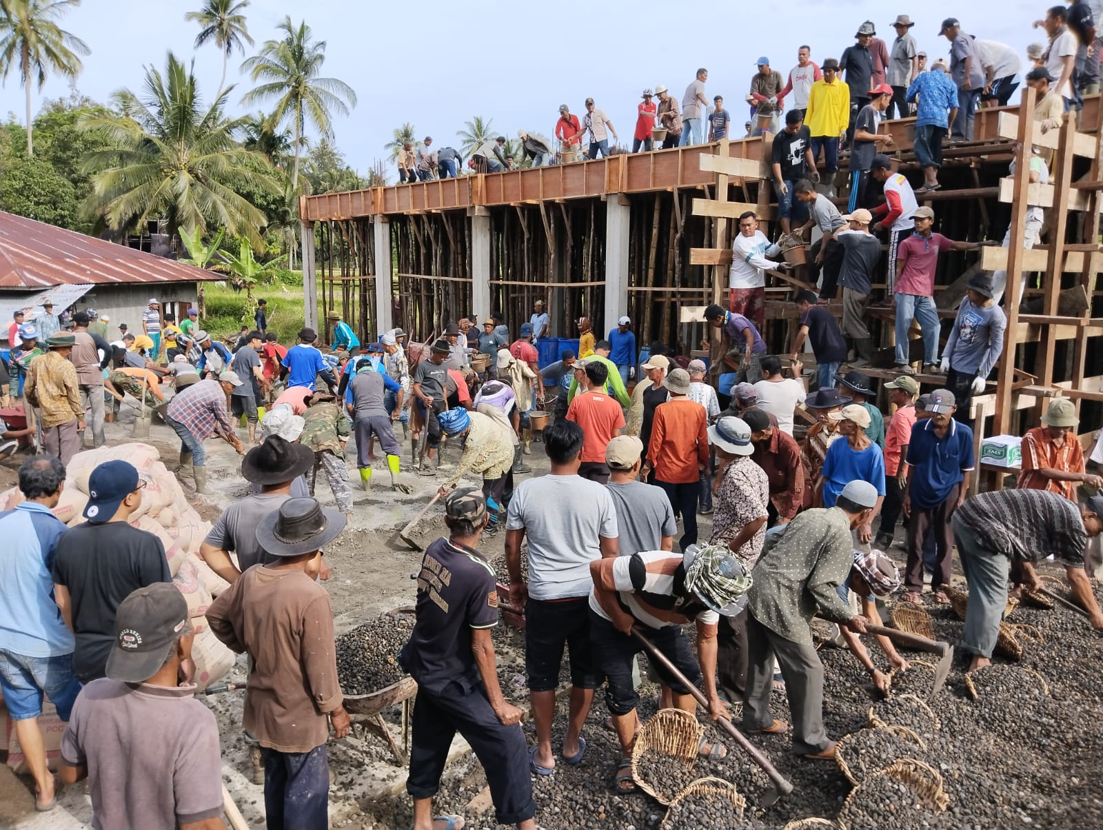 Langgam.id – Sekitar 400 warga Nagari Tanjung Barulak, Kecamatan Batipuh, Kabupaten Tanah Datar, Sumatra Barat, menyingsingkan lengan, wakafkan tenaga, menggotong pembangunan konstruksi lantai 1 Asrama Putra Madrasah Tarbiyah Islamiyah (MTI) Tanjung Barulak, Sabtu (15/7/2023). Di samping itu juga turut serta siswa yang berbadan besar, dan para perempuan Tanjung Barulak untuk kepastian sektor logistik atau dapur.