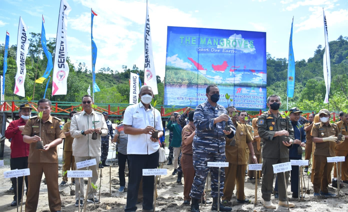 Langgam.id – Dalam rangka memperingati Hari Mangrove se-Dunia, PT Semen Padang bersama Lantamal II Padang melakukan penanaman bibit mangrove sebanyak 4000 batang di Pantai Manjuto, Nagari Sungai Pinang, Kabupaten Pessel, Sumbar, Selasa (26/7/2022).