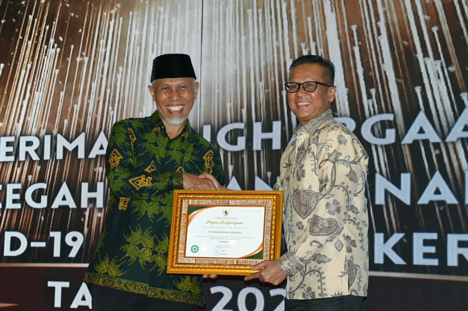 Gubernur Mahyeldi mengapresiasi PT Semen Padang yang telah meraih penghargaan dari Kemnaker RI. Karena, penghargaan ini semakin membuktikan bahwa PT Semen Padang komitmen terhadap P2HIV-AIDS, serta pencegahan dan penanggulangan Covid-19 di tempat kerja.