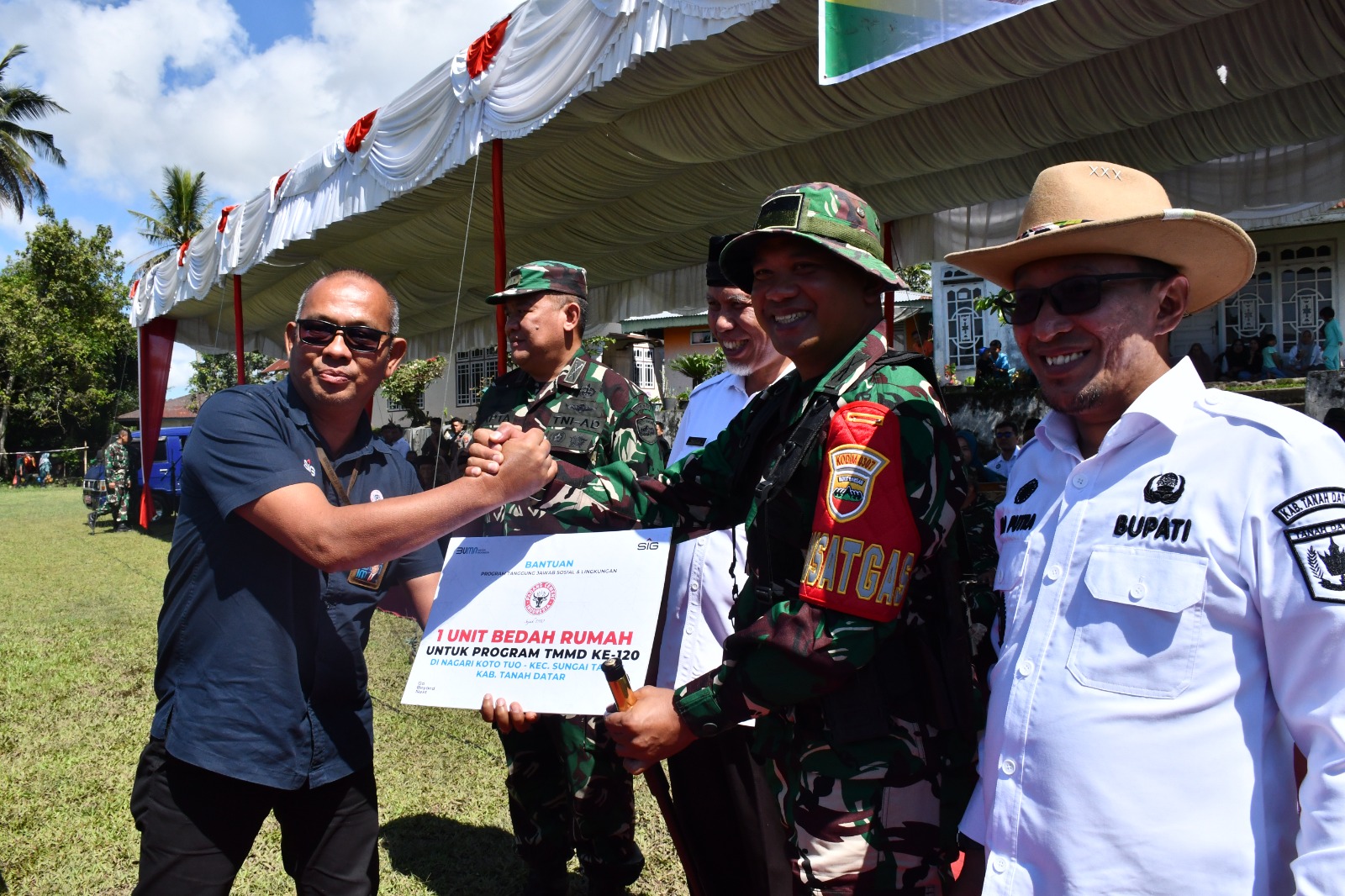 Dandim 0307/Tanah Datar Letkol Inf Agus Priyo Pujo Sumedi mengatakan, pihaknya mengucapkan terimakasih kepada PT Semen Padang yang ikut berpartisipasi dalam Program TMMD di Kecamatan Sungai Tarab, Kabupaten Tanah Datar ini. “Kita ucapkan terimakasih banyak kepada PT Semen Padang, rumah bantuan ini segera kita bangun dan setelah selesai akan kita resmikan kembali bersama-sama,” ujarnya.