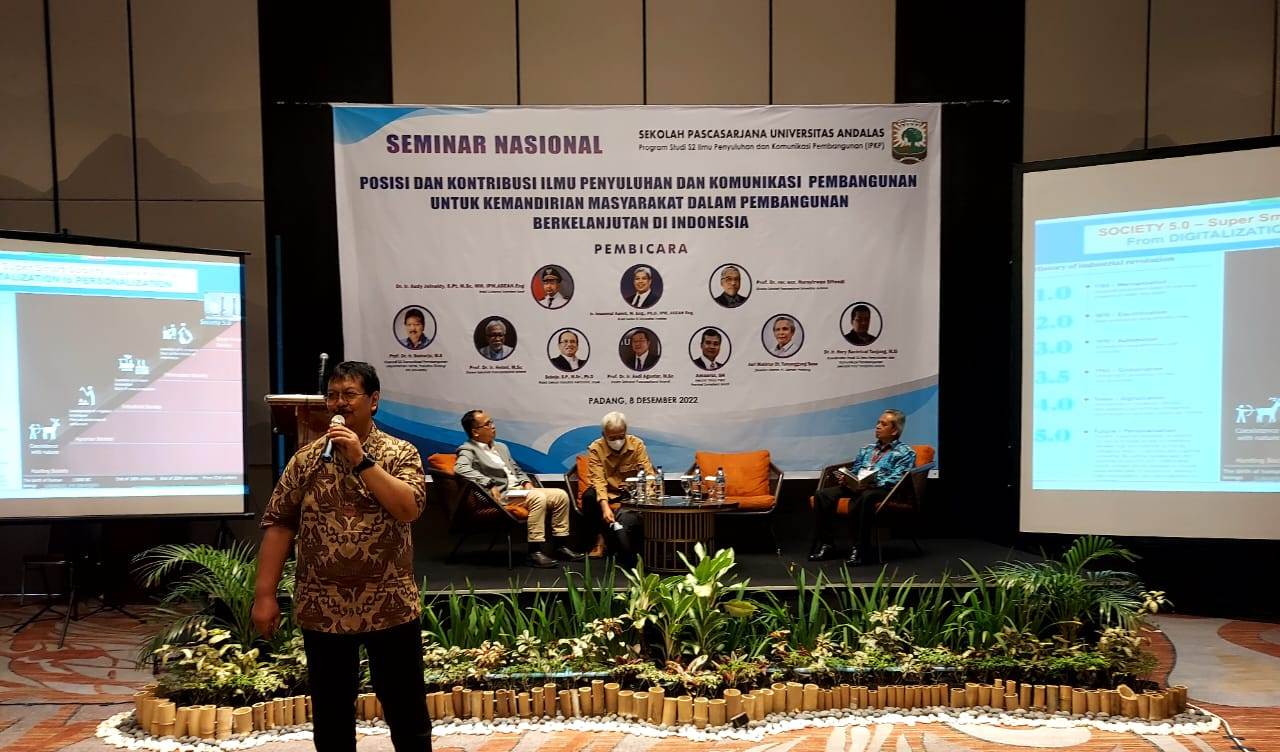 Senada, Wakil Rektor III Unand Bidang SDM dan Teknologi Informasi Dr. Ir. Insanul Kamil yang mewakili rektor dalam membuka seminar tersebut mengajak Sekolah Pascasarjana Unand untuk terus melakukan terobosan dalam pengembangan Prodi Ilmu Penyuluhan dan Komunikasi Pembangunan.