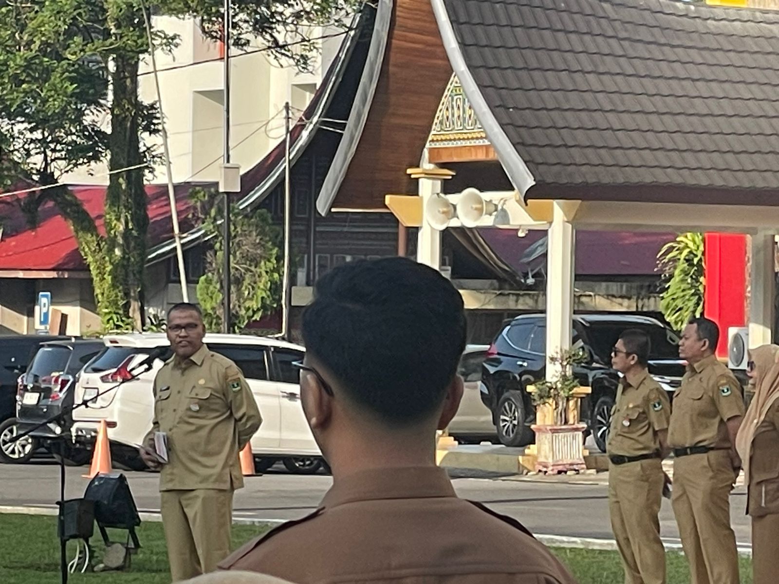 Tampak hadir dalam apel pagi tersebut, Asisten Administrasi Umum, Andri Yulika; Kepala Biro Adpim, Mursalim; Kepala Biro Hukum, Masheri Yanda Boy; Kepala Biro Pemerintahan, Edzedin Zein.