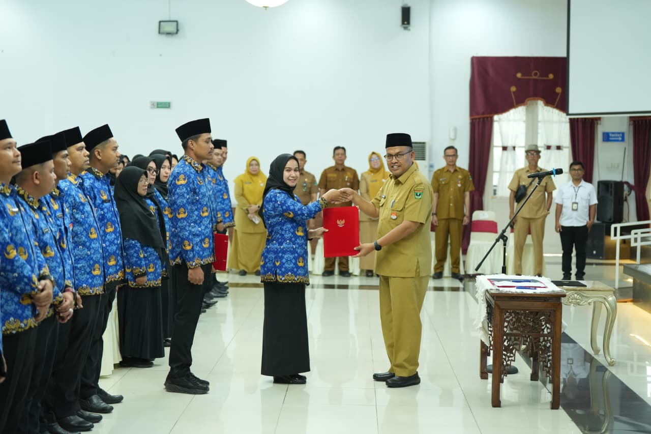 Langgam.id — Sekretaris Daerah Provinsi Sumatera Barat, Arry Yuswandi menyerahkan Surat Keputusan (SK) pengangkatan kepada 117 tenaga honorer Pemerintah Provinsi Sumatera Barat (Pemprov Sumbar) yang resmi berstatus Pegawai Pemerintah dengan Perjanjian Kerja (PPPK) Paruh Waktu.