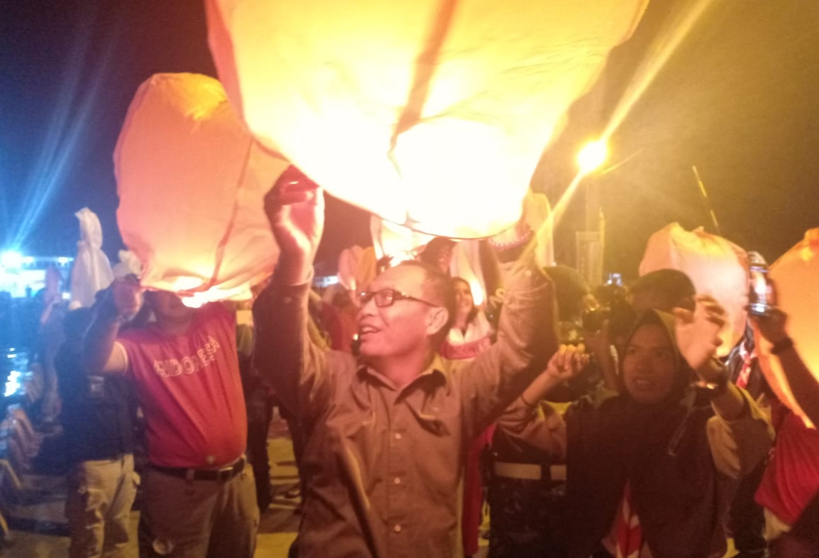 Langgam.id – Seribu lampion dilepas di Dermaga Tuapejat, Kabupaten Kepulauan Mentawai, Sumatra Barat, Jumat (16/8/2019) malam. Pelapasan lampion yang dipimpin Komandan Korem (Danrem) 032 Wirabraja Brigjen TNI Kunto Arief Wibowo itu merupakan rangkaian kegiatan menyambut HUT ke-74 RI.