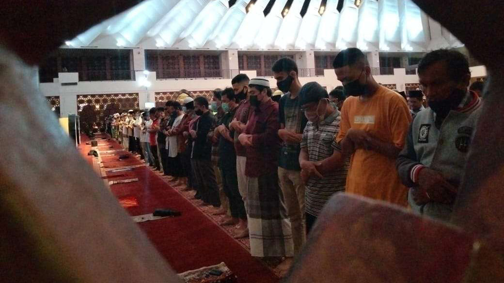 Warga Padang salat di Masjid Raya Sumbar. [foto:Rahmadi/langgam.id]