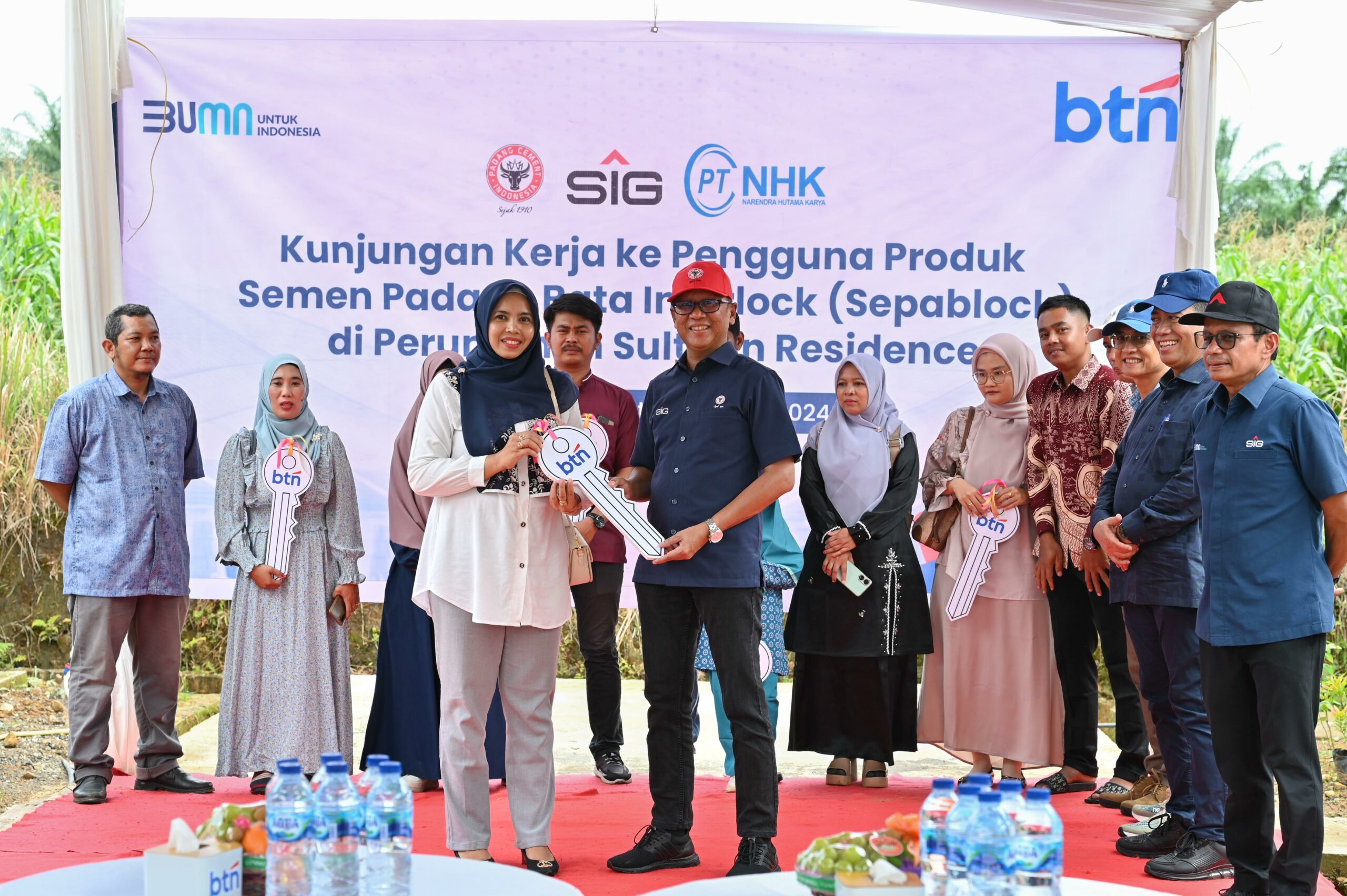 Dalam acara kunjungan kerja tersebut, BTN bersama SIG dan anak usahanya, PT Semen Padang, turut menyerahkan secara langsung kunci rumah kepada konsumen di Sulthan Residence, Kabupaten Pasaman Barat, Sumatra Barat, pada Jumat (11/10/2024). Selain kedua Direktur Utama perusahaan, turut hadir juga perwakilan jajaran Direksi BTN, SIG, PT Semen Padang dan PT Narendra Hutama Karya.