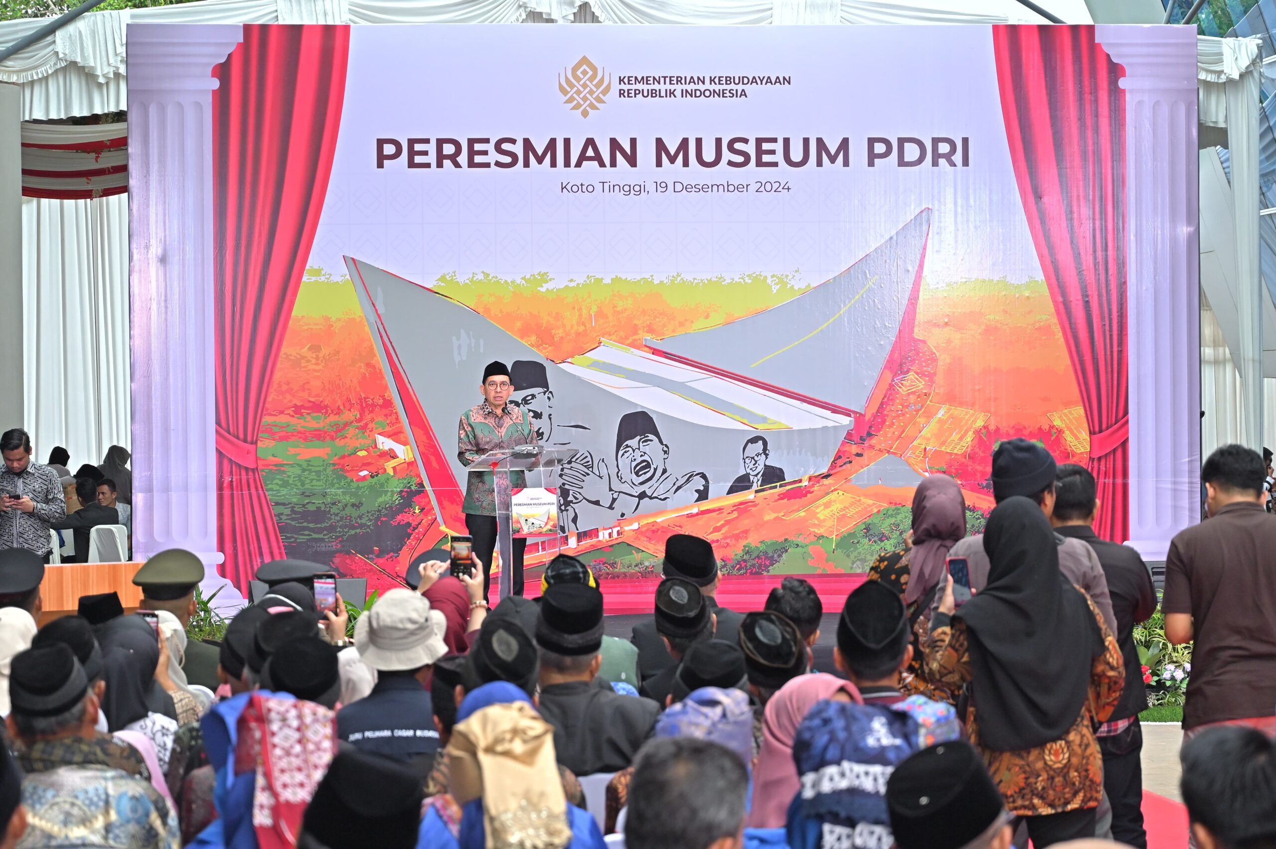 Langgam.id–Menteri Kebudayaan (Menbud) RI, Fadli Zon, didampingi Gubernur Sumatera Barat (Sumbar), Mahyeldi Ansharullah, meresmikan Museum Pemerintahan Darurat Republik Indonesia (PDRI) di Koto Tinggi, Kecamatan Gunuang Omeh, Kabupaten Limapuluh Kota, Kamis (19/12/2024), bertepatan dengan peringatan Hari Bela Negara (HBN) ke-76.