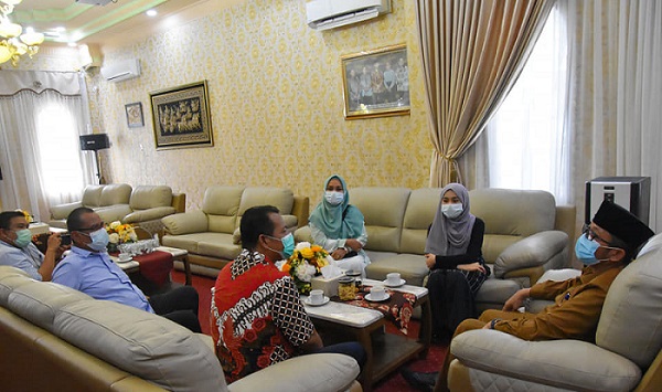 Feena bertemu Plt Wako Padang Hendri Septa di ruang VIP rumah dinas (foto:Humas Kota Padang)
