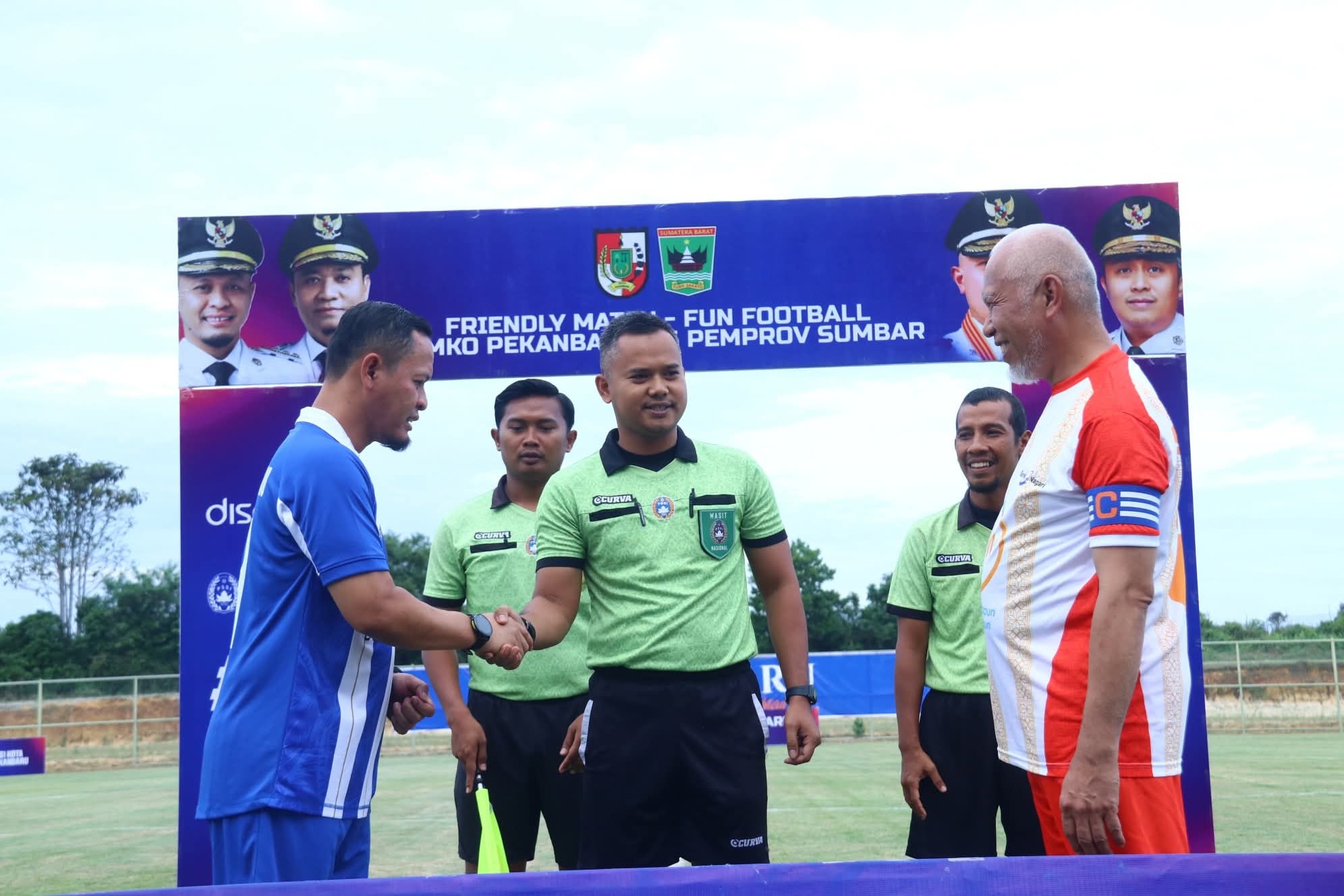 Ia juga menyampaikan terima kasih atas kehadiran Gubernur Mahyeldi yang tidak hanya hadir, tapi juga ikut bermain dalam laga persahabatan antara Pemprov Sumbar dan Pemko Pekanbaru.