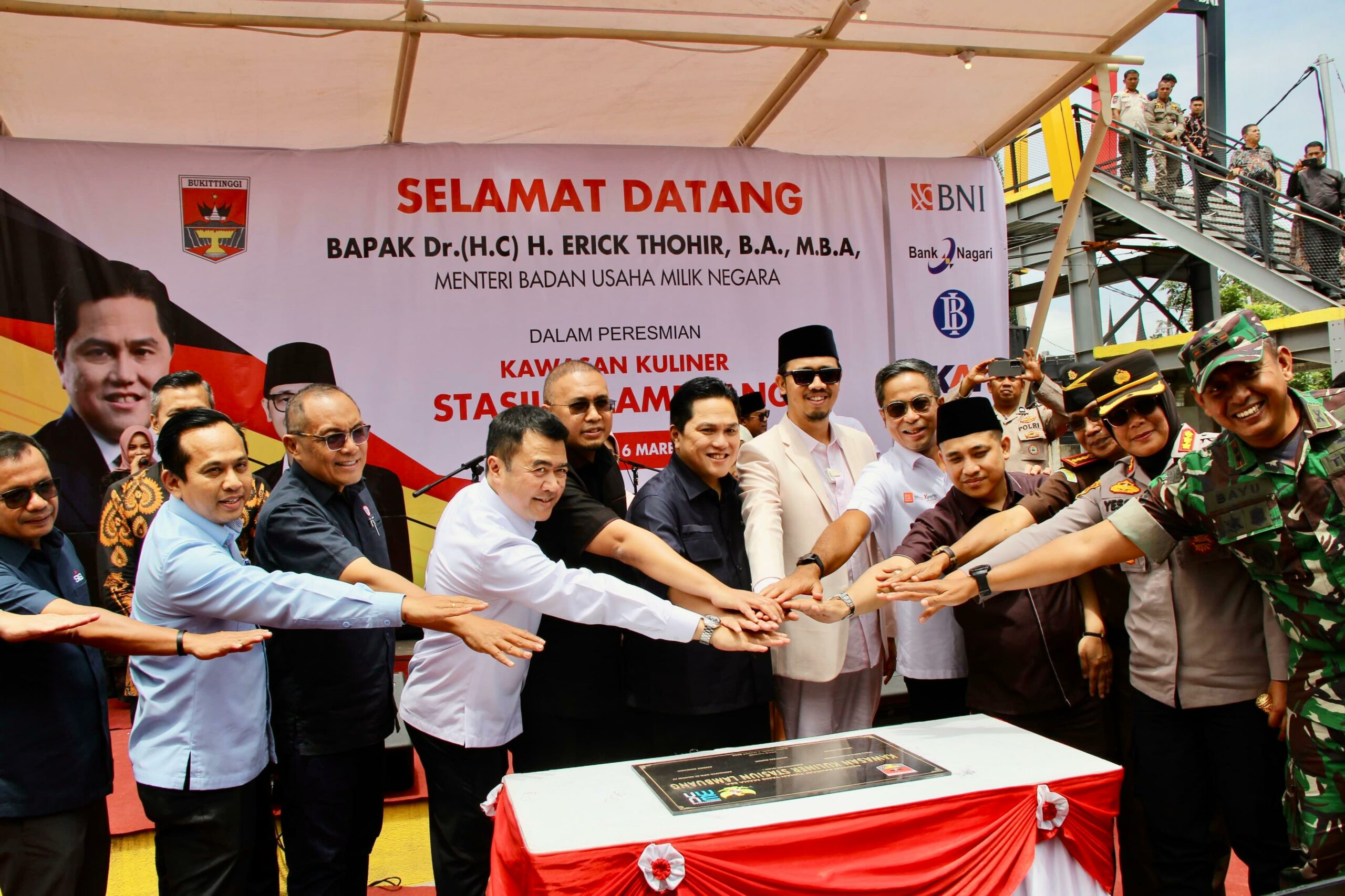 Langgam.id – Menteri BUMN Erick Thohir meresmikan Stasiun Lambuang yang berlokasi di bekas Stasiun Kereta Api Bukittinggi, Rabu (6/3/2024). Stasiun Lambuang ini akan menjadi pusat kuliner yang terbesar di Sumatra Barat (Sumbar).