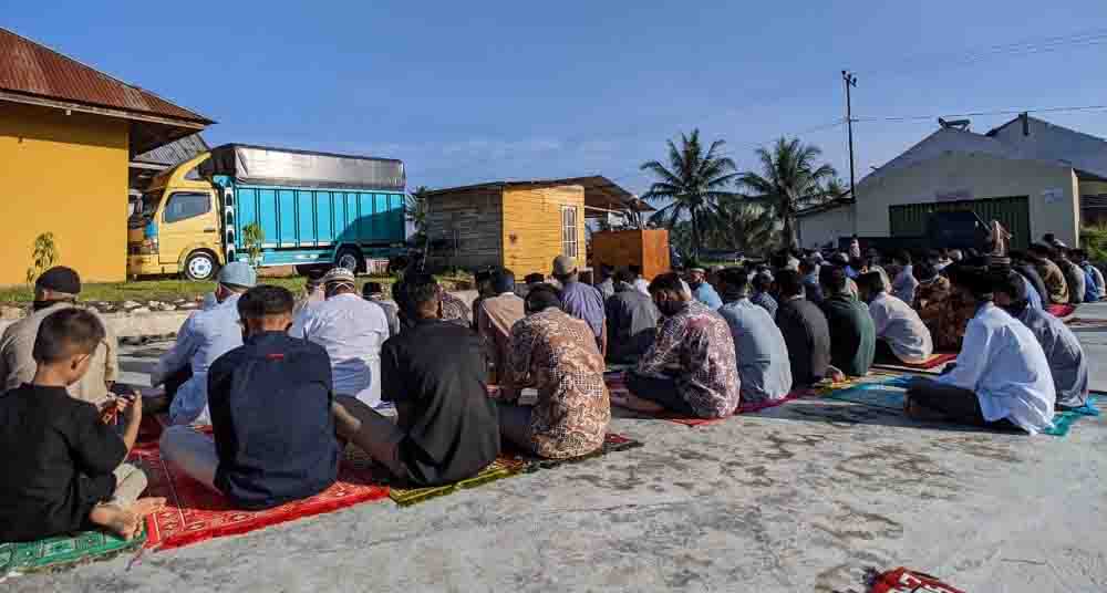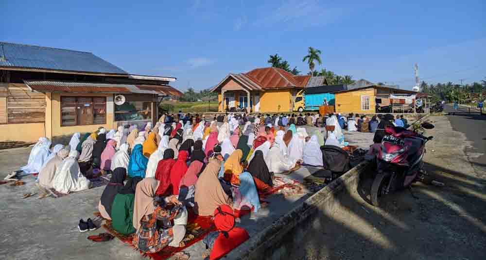 Masyarakat di kawasan Pincuran Gadang, Andaleh, Kecamatah Luak Kabupaten Limapuluh Kota juga menggelar salat Idul Fitri di lapangan, dengan protap Covid-19.