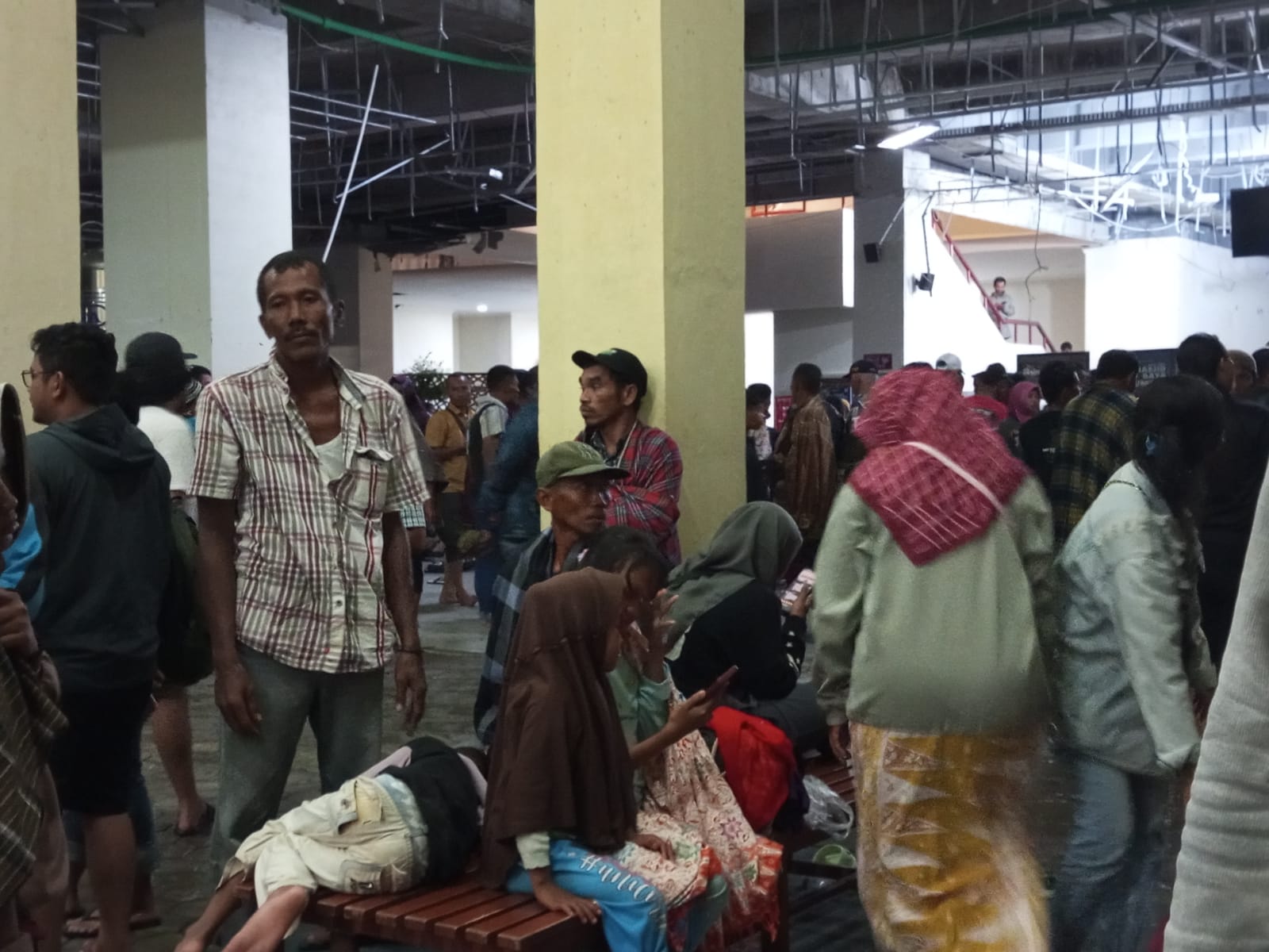 Mereka berteduh dan tidur di bangunan lantai bawah masjid raya sumbar. Dikarenakan hari hujan, lantai dibangunan tersebut terlihat kotor dan becek. Sedangkan banyak anak-anak yang tidur di areal tersebut. Tempat itu juga tidak memiliki penghalang dari angin.