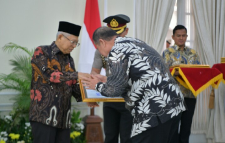 Penghargaan ini diserahkan oleh Wakil Presiden Maruf Amin kepada Wakil Gubernur Sumbar, Nasrul Abit, di Istana Wapres, Jakarta, Kamis (21/11/2019).