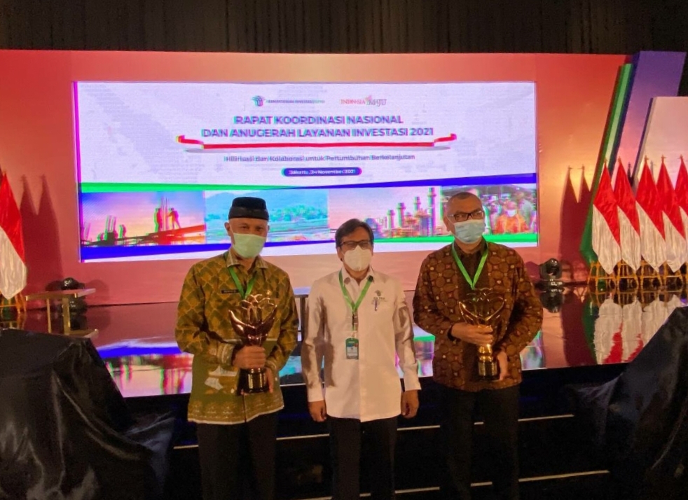 Penghargaan ini diraih atas pencapaian Dinas Penanaman Modal dan Pelayanan Terpadu Satu Pintu Provinsi Sumatera Barat mendapatkan Peringkat 3 pada level Nasional untuk Penilaian Kinerja Pelayanan Terpadu Satu Pintu dan Percepatan Pelaksanaan Berusaha.